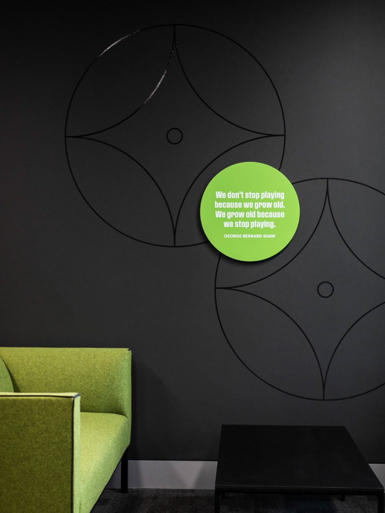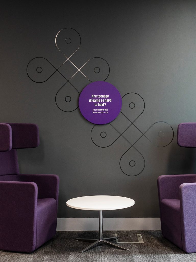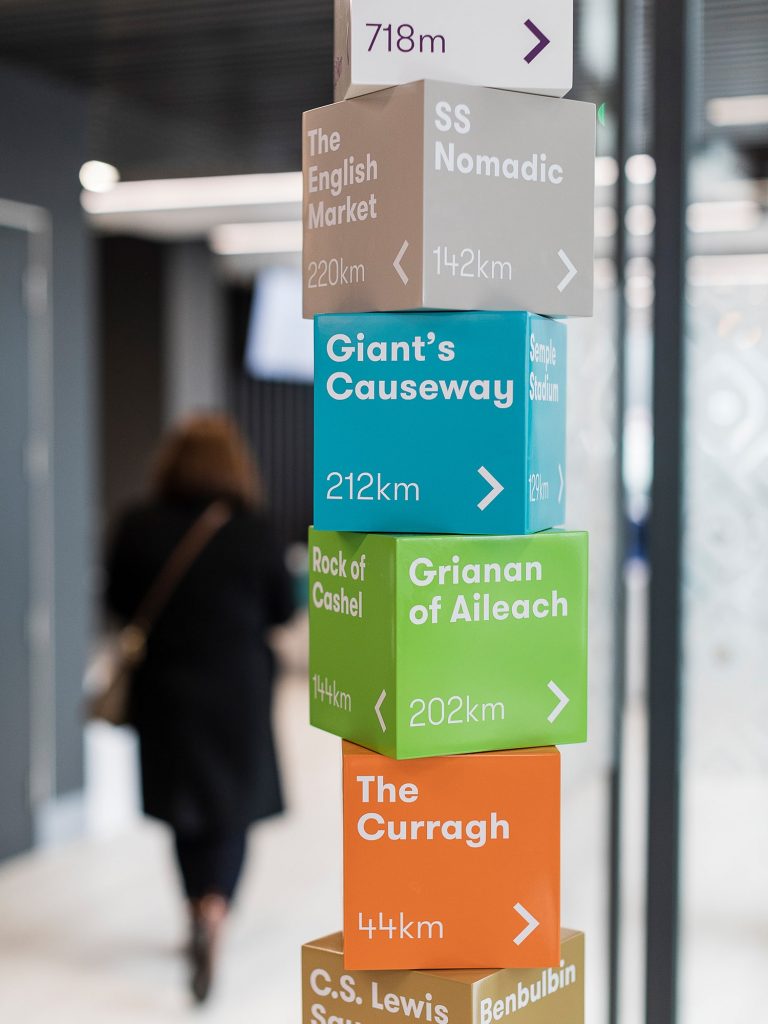 Building brand and strengthening culture in a changing world is a priority for many organisations. Office space and working environments play an important role in supporting and enhancing company values and personality. When developing their Irish HQ we worked with Grant Thornton to help embed their people first and partnership positioning with graphic interventions and a comprehensive orientation programme throughout the 15,000sqm building.