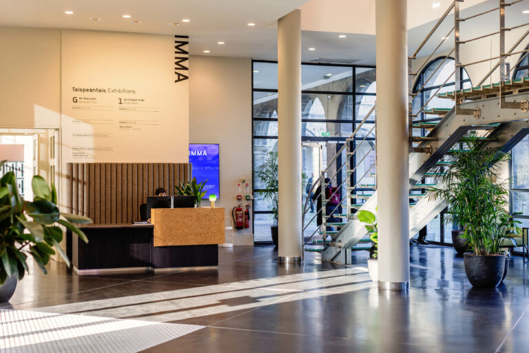 Situated in the historic surroundings of The Royal Hospital Kilmainham, we developed a sympathetic signage system that strikes a balance between helping the visitors navigate while giving them freedom to explore and wander. The wayfinding strategy analysed user journeys and key decision points, as well as consideration of the unique architecture, exhibition spaces, and facilities at IMMA. The dual language system also takes into account IMMA’s ongoing universal design and accessibility programme.