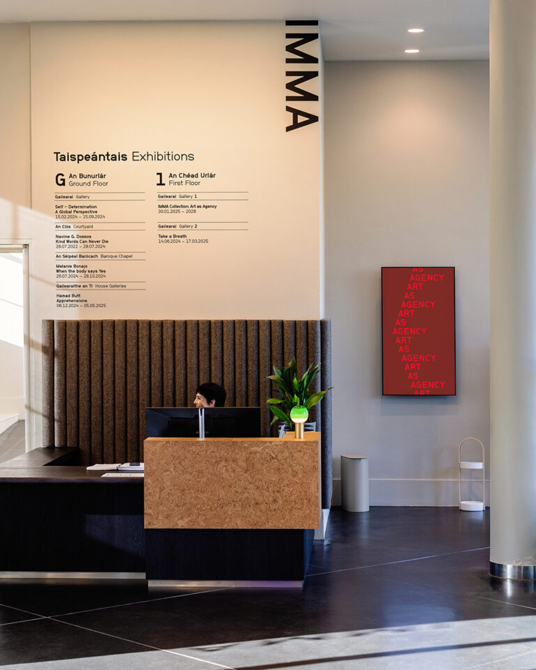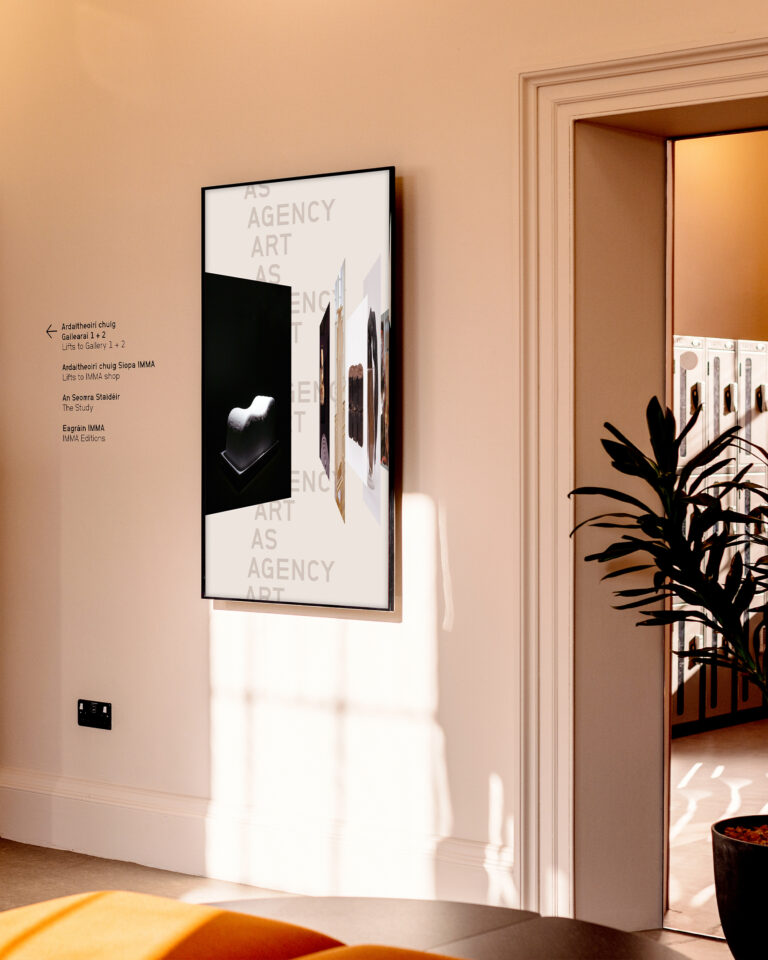 Using the museum’s system for storing artworks as a starting point, we developed ways of showcasing multiple images together to distinguish Art as Agency from regular exhibition programming, where use of single hero images is the standard. The identity adopts a tone of restraint, refreshing the IMMA brand language while presenting it in a more elevated form that reflects the scale and significance of this landmark exhibition.